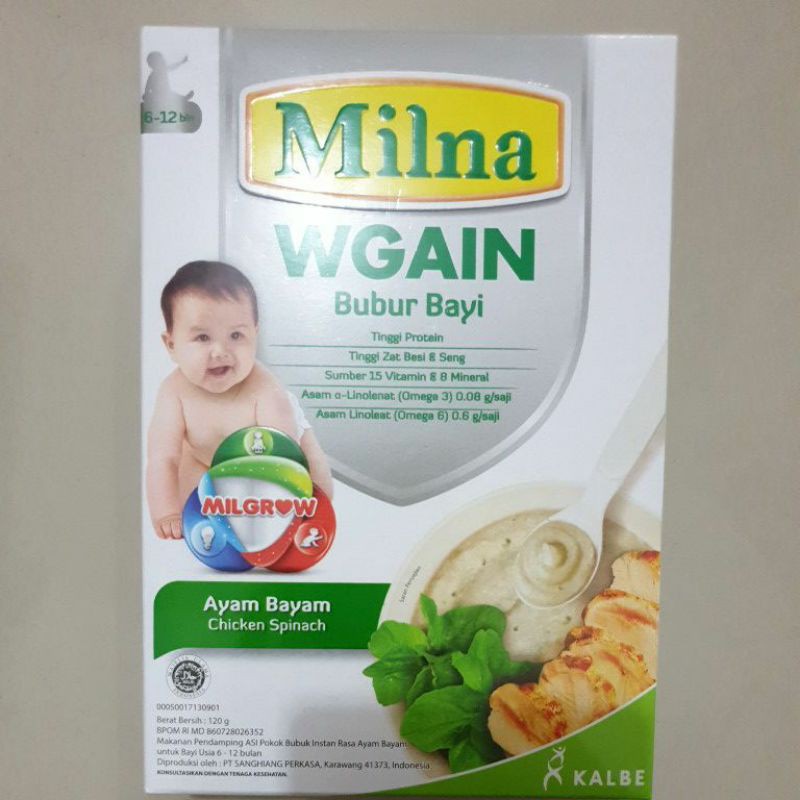 Milna Bubur Bayi Wgain Ayam Manis Teriyaki 120gr 8 Rp30000. Bubur bayi pendamping ASI untuk usia 6 bulan ke atas yang teruji klinis dapat menambah berat badan bayi bila dikonsumsi 2x sehari secara rutin dengan ekstra energi dan protein tinggi dari Asam Amino Esensial protein khusus yang. Buy milna wgain ayam bayam in SurabayaIndonesia.